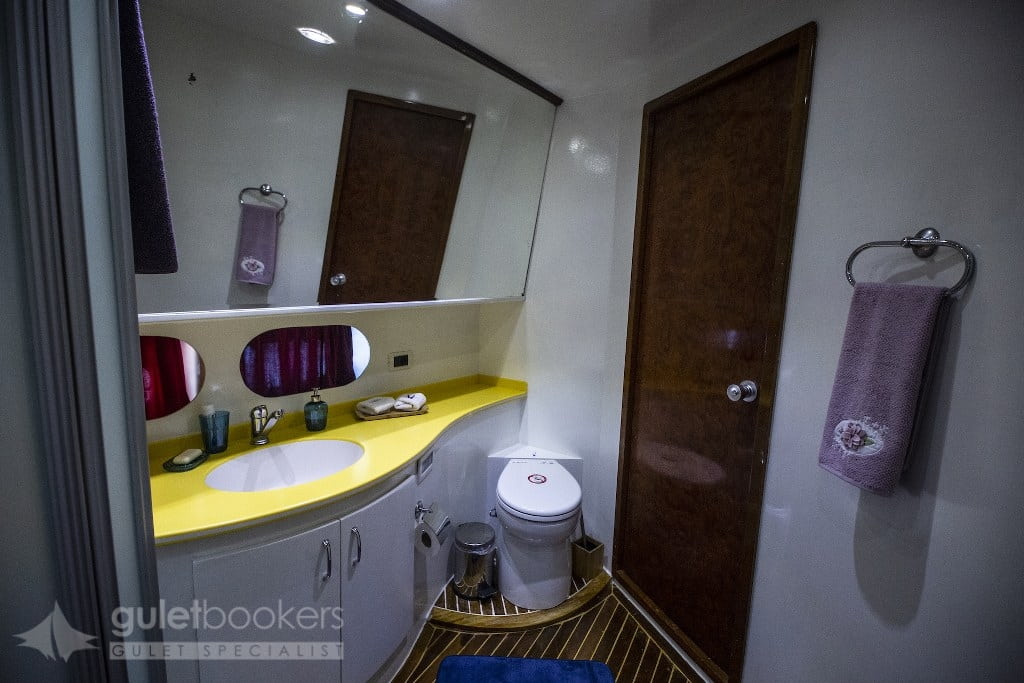 6 metre genişliğindeki tekne, ferah yaşam alanlarıyla dikkat çekmektedir. Her kabinde özel banyo ve günde 6 saat kullanılabilen klima sistemi bulunmaktadır. Modern donanımlarla yenilenen Erdogan, Göcek merkezli hizmet vermektedir.