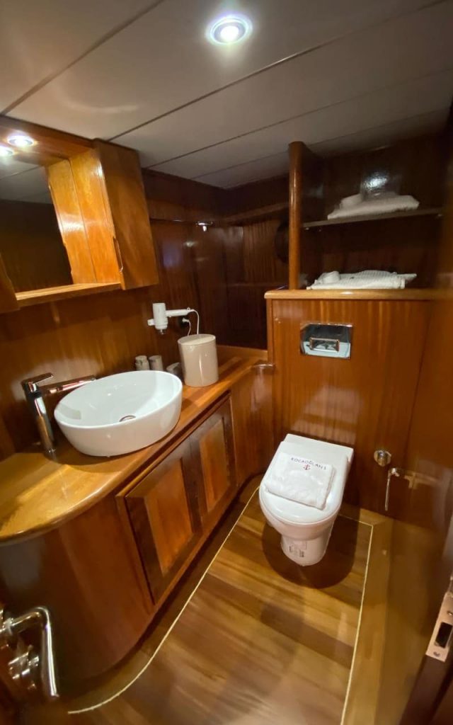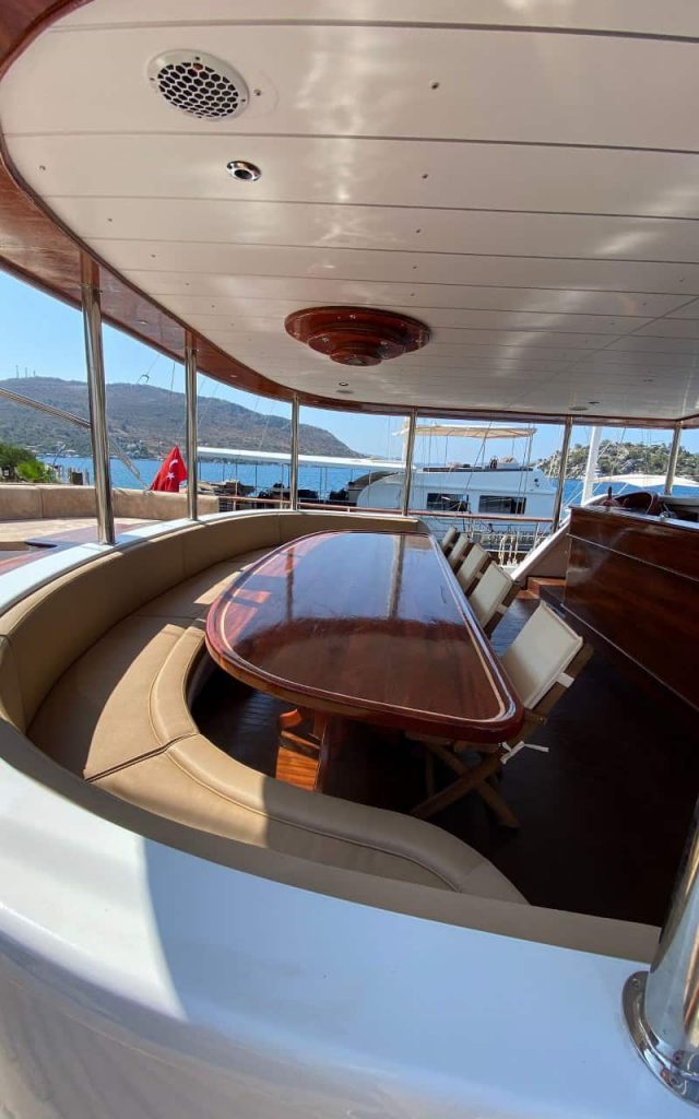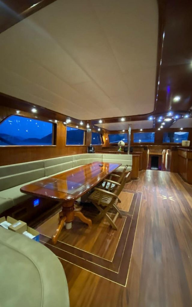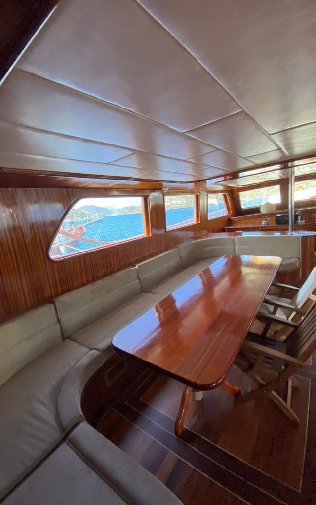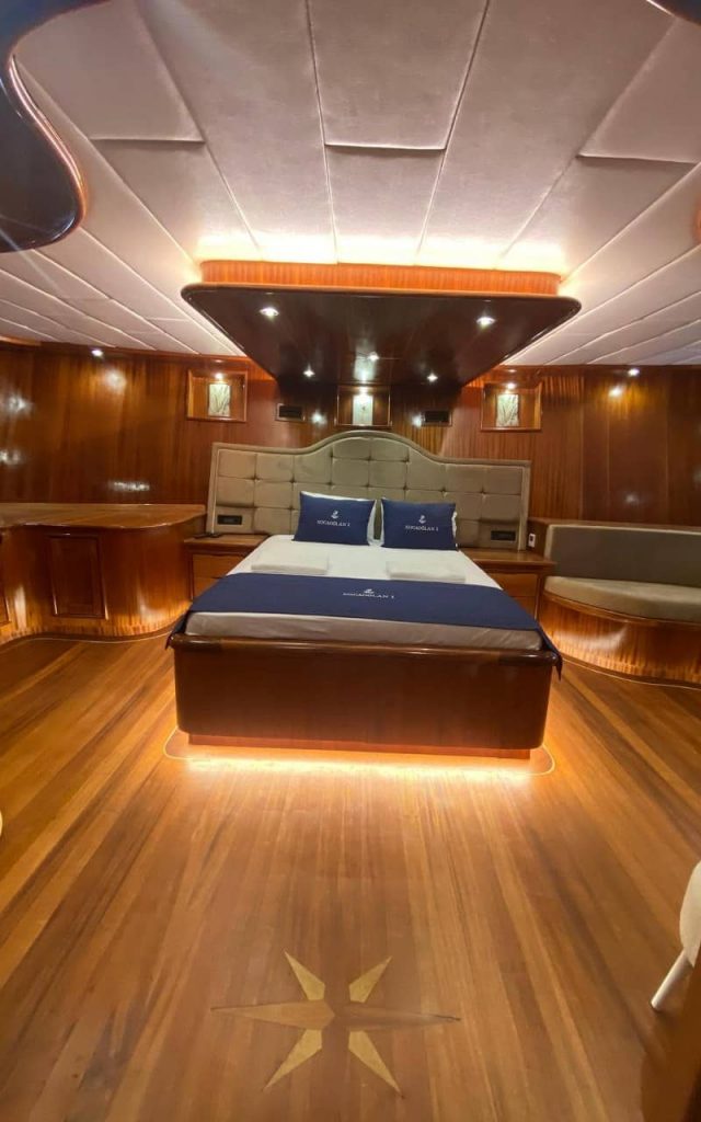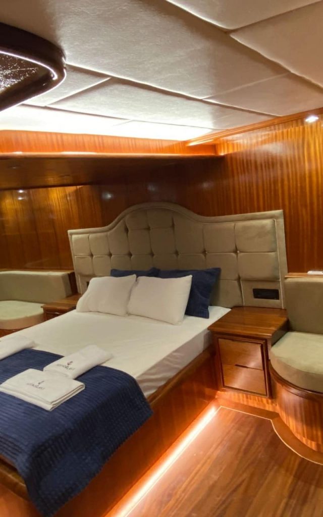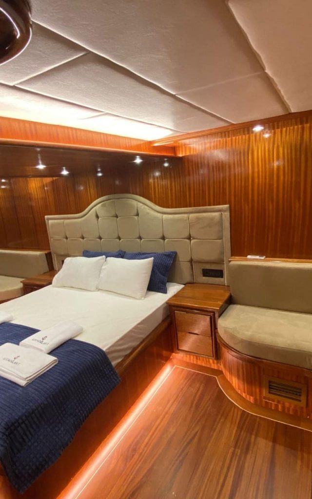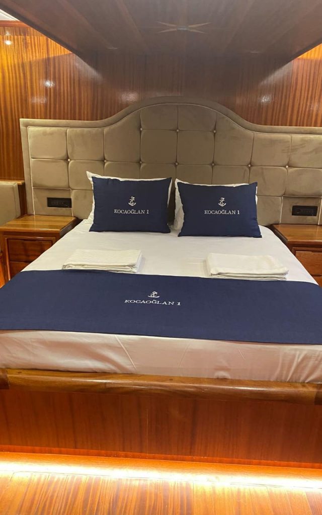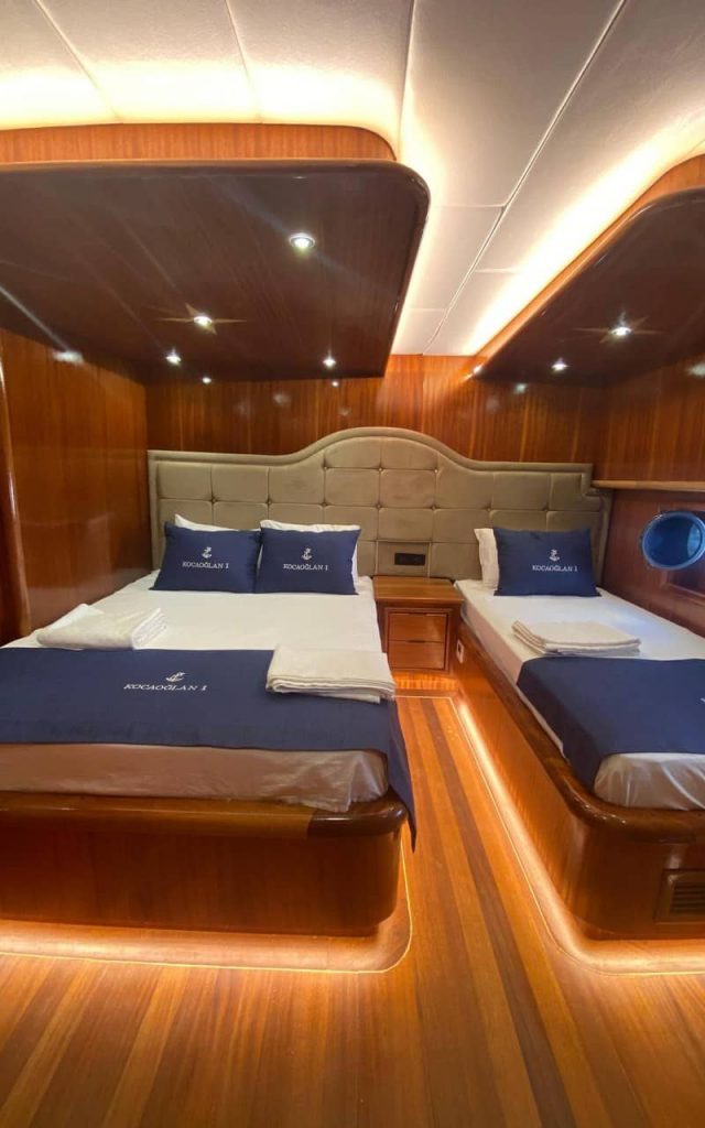 Türkiye’de üst düzey lüks yat kiralama deneyimini sunan gulet Kocaoglan 1, 32 metre uzunluğundaki ihtişamlı ahşap gövdesiyle göz dolduruyor. Bu geniş ve özel tekne, konuklarına pek çok konforlu ve modern olanak sunuyor.